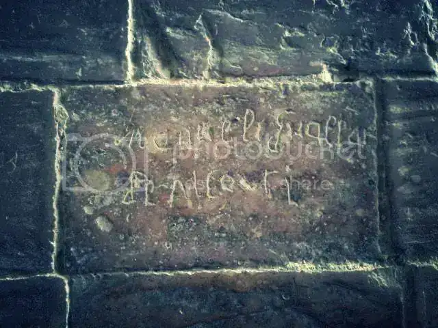 Una de las muchas marcas de cantero que se encuentran en los sillares de la iglesia gótica de San Miguel, reutilizados y procedentes - casi con toda seguridad - de una construcción románica anterior. La mayoría de marcas coinciden con las de los sillares de la sala capitular del castillo. Eso nos lleva a pensar en la existencia de una cofradía de constructores al amparo de los templarios..