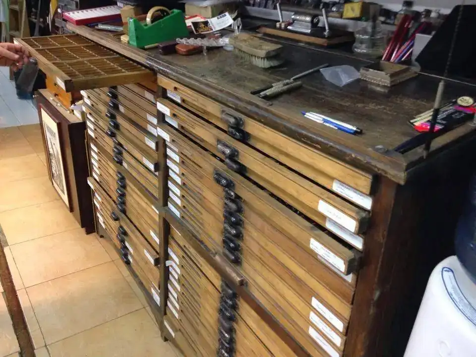 [TD="class: tr-caption, align: center"]Un viejo mueble de tipografía, rescatado de una antigua imprenta, fue modificado para alojar miles y miles de piezas de repuesto.
