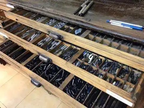 [TD="class: tr-caption, align: center"]Una buena cantidad de cajoncillos repletos de piezas aseguran que se pueda contar con el respuesto o la pieza faltante adecuada.