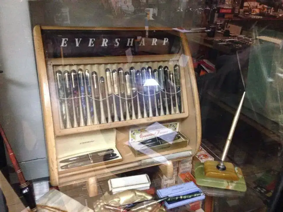 [TD="class: tr-caption, align: center"]Un antiguo display de la marca Eversharp muestra una interesante colección de ejemplares del modelo "Skyline".