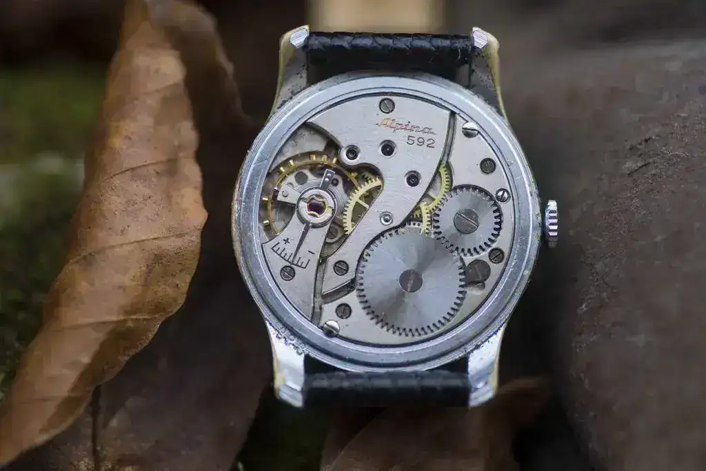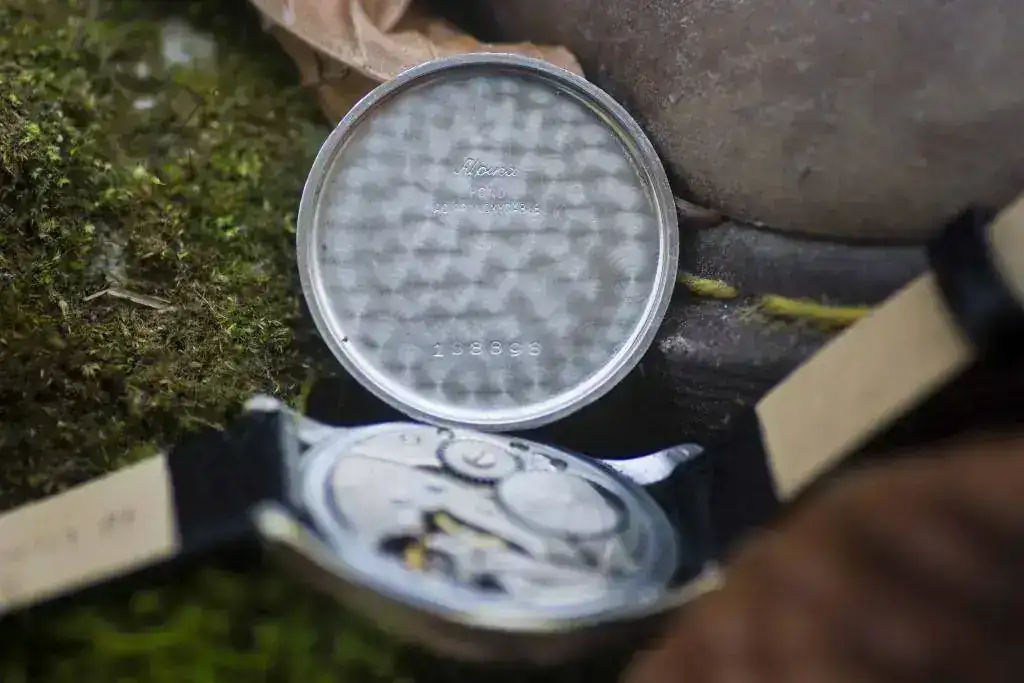 ¿Cuál es la diferencia con un Lavina 28? El movimiento se firma dos veces: en el puente "Minerva", y debajo de la rueda de balance la flecha.