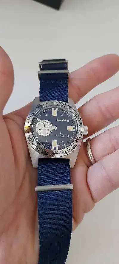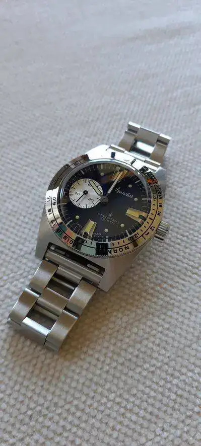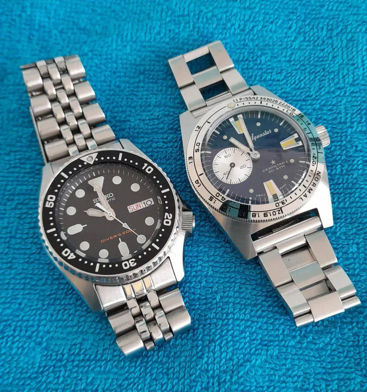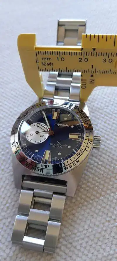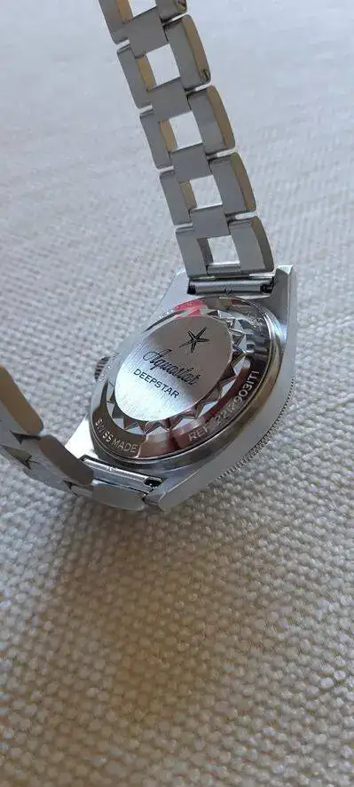 Este Deepstar 2 lleva cristal abombado de zafiro, bisel bi-direccional con escala de descompresión de buceo (aunque ya no se recomienda guiarse por él), WR de 200m y calibre Sellita SW-290 en fondo ciego. En este video de Youtube puede verse el uso de este bisel en los Aquastar.