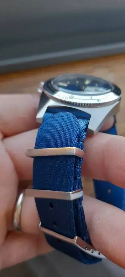 Como dije antes, la opción del brazalete BOR no se llevó a cabo por ser poco estrecho hacia el cierre. Es decir, no era “tapered”. Sin embargo, tampoco es que me entusiasmase la nato de serie (desde que probé las Chevron de Crown&Buckle, no hay vuelta atrás), por lo que me decidí a comprar en Black Friday un brazalete Forstner en oferta, el