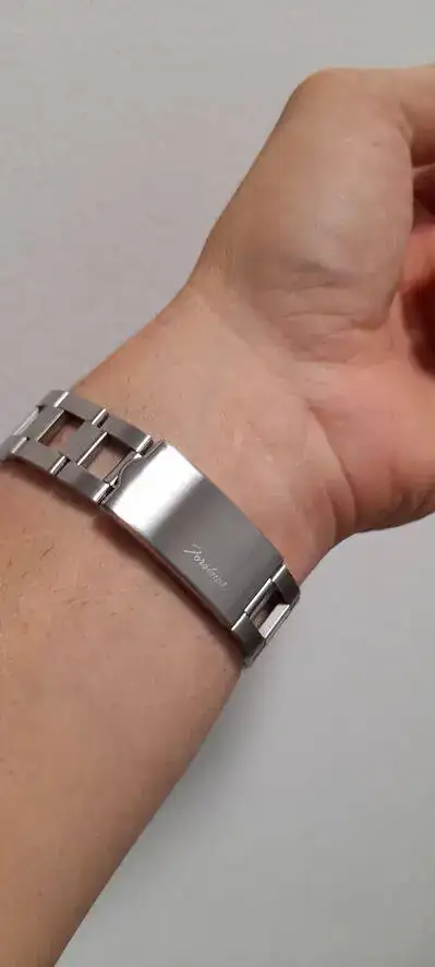 A mi juicio, bastante bien, pese a llevar endlinks rectos. Sin embargo, aunque reconozco que éste modelo es muy adecuado para cajas de este tipo, el cierre del reloj y el conjunto son ligeros y no aparentan al tacto tan sólidos como otros OEM de otras marcas. En general, ofrece un acabado vintage muy bueno.
