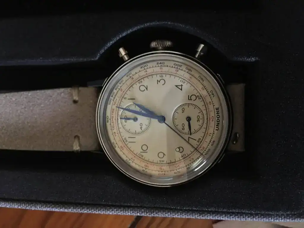 Hace algún tiempo vi el hilo del compañero Aherrojo, en el que se había "agenciado" un crono de los más inusual. Clásico, pero de fabricación moderna. De cuarzo, pero con toques mecánicos.