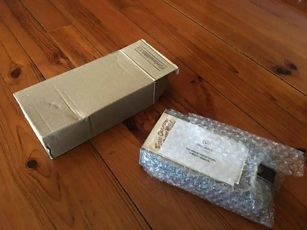 Empecemos con el unboxing, tras esperar un par de meses al fin llega un sobre negro de Hong Kong con una cajita de cartón craft patatera y un sello en el lateral, no es muy impresionante que digamos.