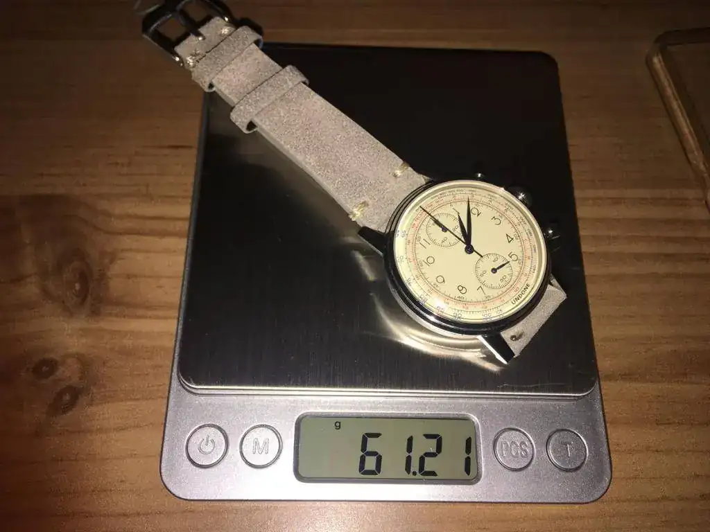 La correa, bueno, personalmente me parece la parte más floja y nada más recibirlo la he mandado a paseo. Ahora lleva una Hirsch Ranger Marrón que en mi opinión le queda mucho mejor. El buckle original viene firmado por la marca y es bastante decente.