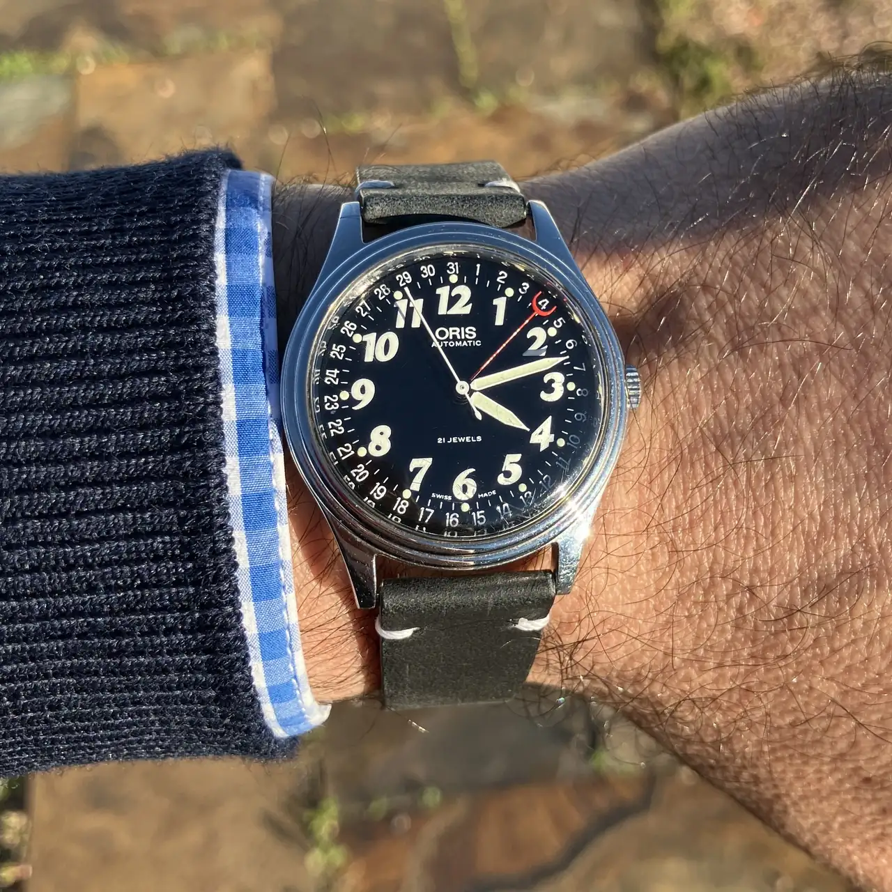 Lo segundo, gracias por tus buenos deseos y cumplidos. No creas que fue fácil centrarse en el ORIS. Me gustaba mucho su esfera pero su corto ancho de asas y la imposibilidad de verlo en ningún escaparate (por estar descatalogado) dificultaba hacerse con uno por los precios que se pedía en los pocos DO Europeos que lo tenían.
