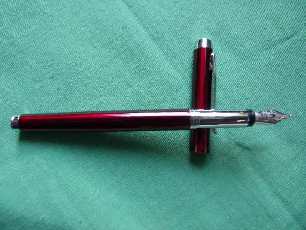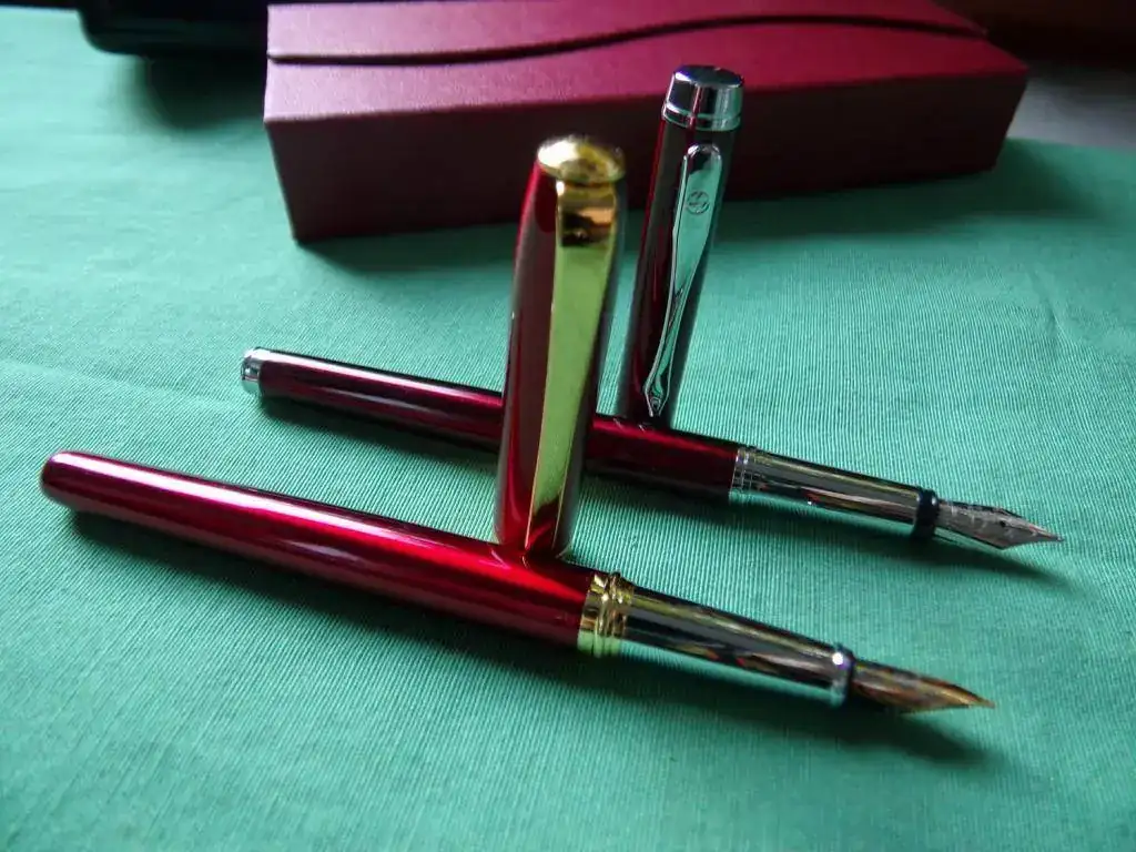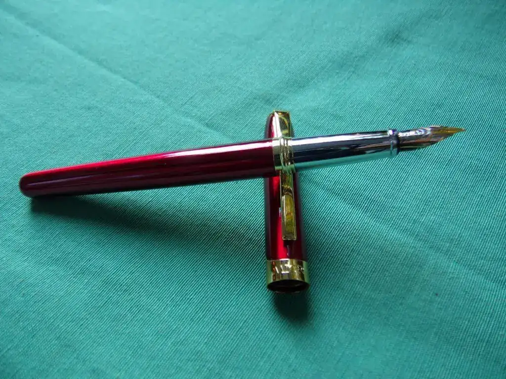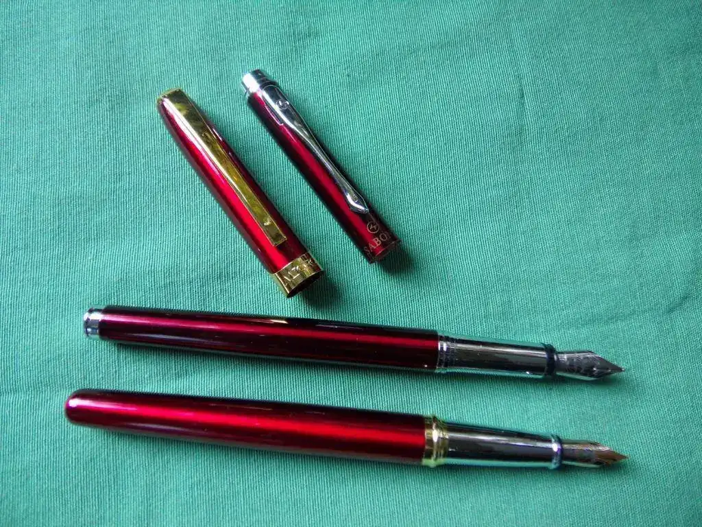Empiezo por la Micro. Amo las Micro. Debo tener como 20. Son, en mi muy inexperta opinión, las mejores plumas en relación calidad-precio del universo. No sé cómo aún no se comercializan en España; que cuando algún importador se anime..... Las Micro, empresa Coreana especializada en la fabricación de elementos de escritura, también posee planta elaboradora en China. Esta roja furiosa toda metal y toda hermosa tiene unos acabados increíbles, es muy dócil y muy suave al tacto. Su plumín es un Liqid M ( ¿? ) de ignota y remota procedencia. Y aún no la usé: llegó en Navidad. Y no sé cuando la probaré.