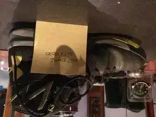 Es una Zapatilla tipo bota en negro con detalles amarillos, de gama alta y francamente espectaculares.