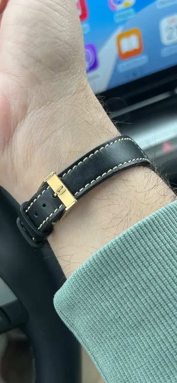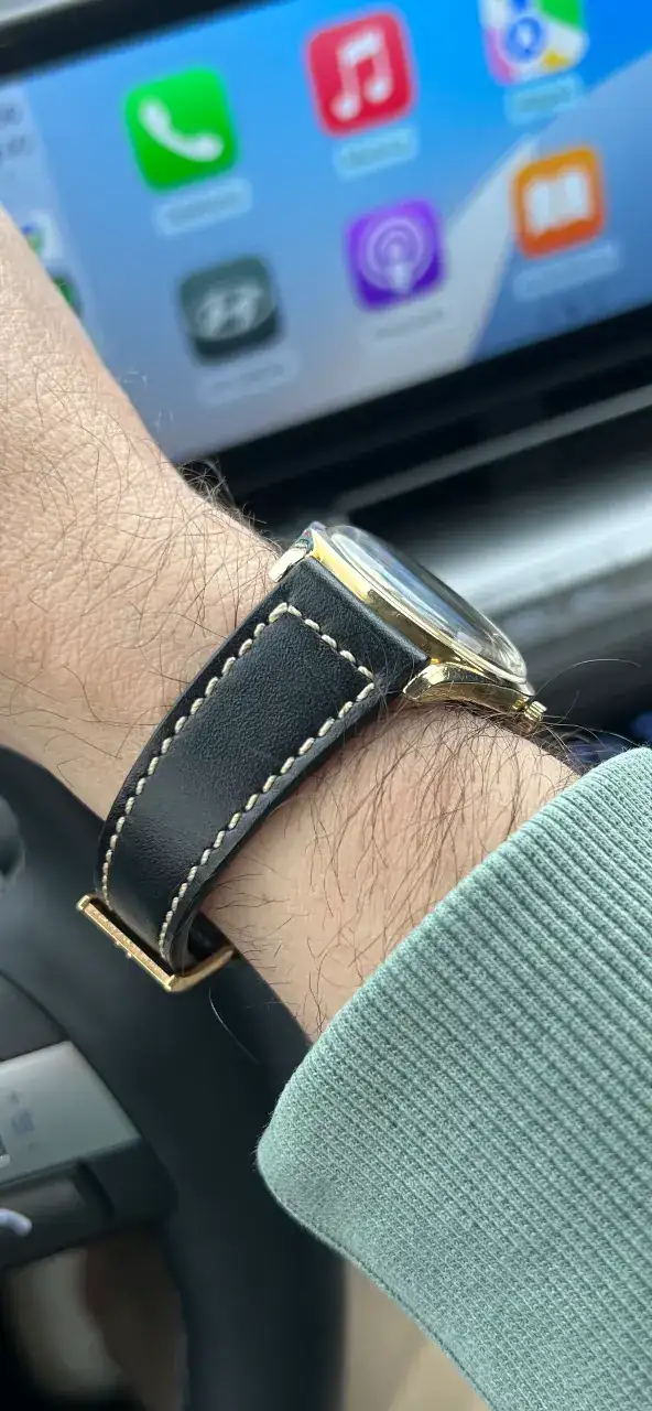 Yo le encargaría la correa a un artesano, seguro que pueden hacer algo muy similar y varios patrocinan al foro. Yo le puse ésta de Ferrer en cuero Saffiano con los pespuntes en gris: