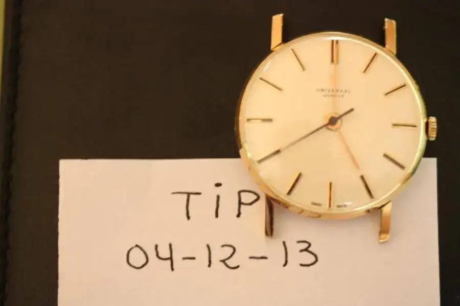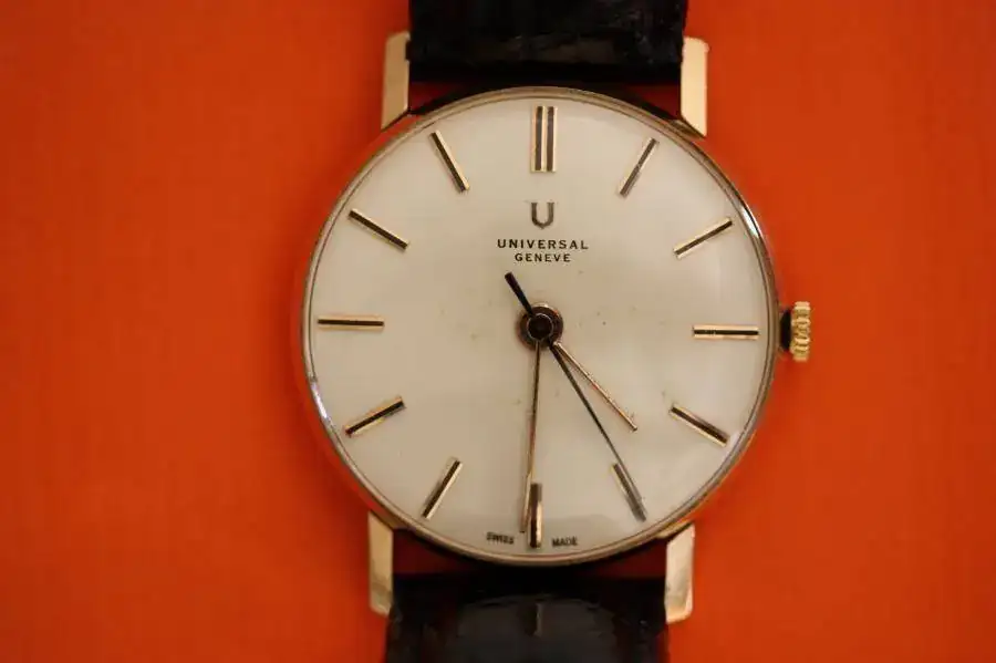 Universal - Geneve en oro de 18k y con calibre 56. Mide 33 mm sin corona y está en un muy buen estado de conservación y funcionamiento.