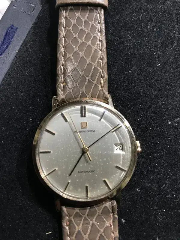 Buenas a to@s y feliz año, saco este UNIVERSAL GENEVE de oro de 18k con microrotor a la venta,tiene sus añitos se nota en la esfera pero de marcha va bastante bien, lleva puesta una corona que no es la suya pero aporto la suya original, sin mas paso unas fotitos y lo dicho...FELIZ AÑO
