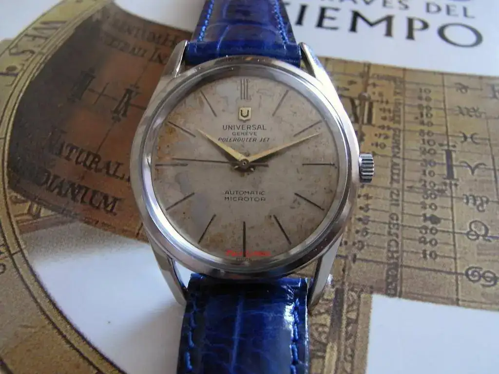 El reloj es un Universal Polereuter Jet que monta un calibre UG 215-9.
