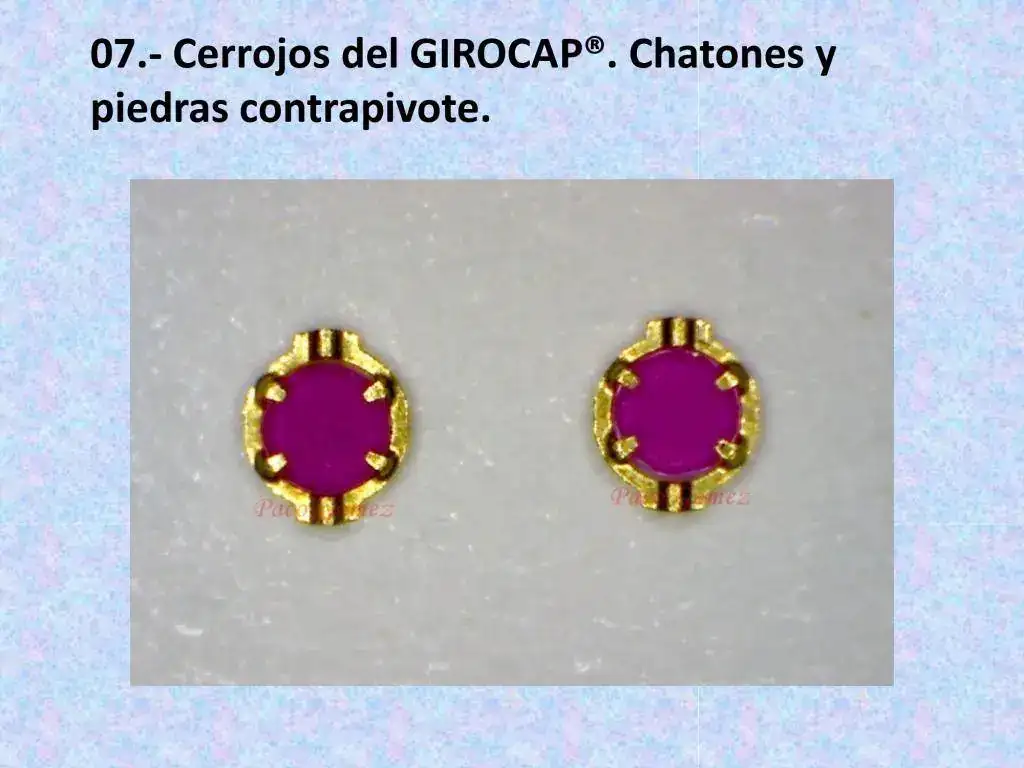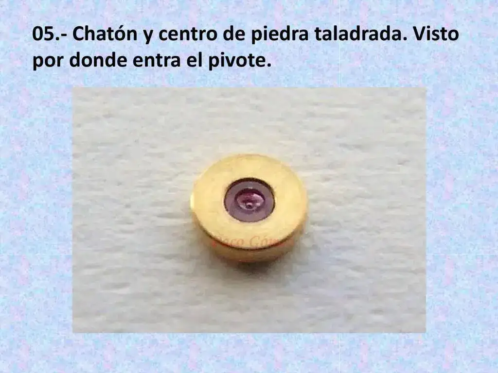 (1) Chatón (en relojería): Anillo metálico que contiene una piedra engastada.