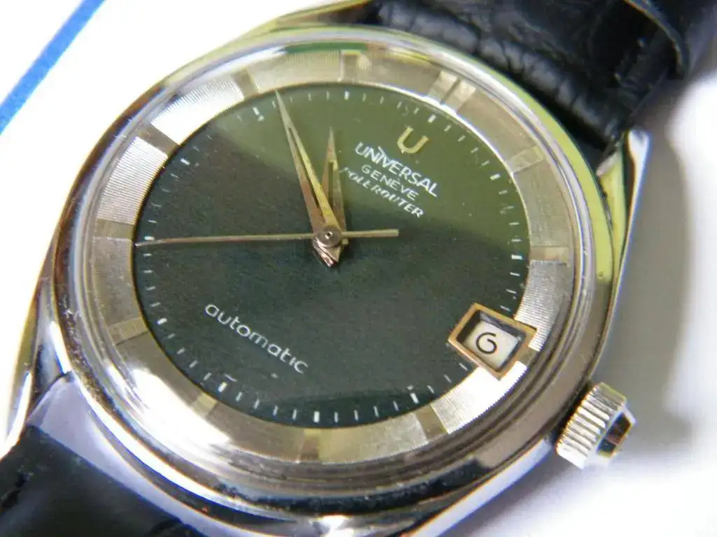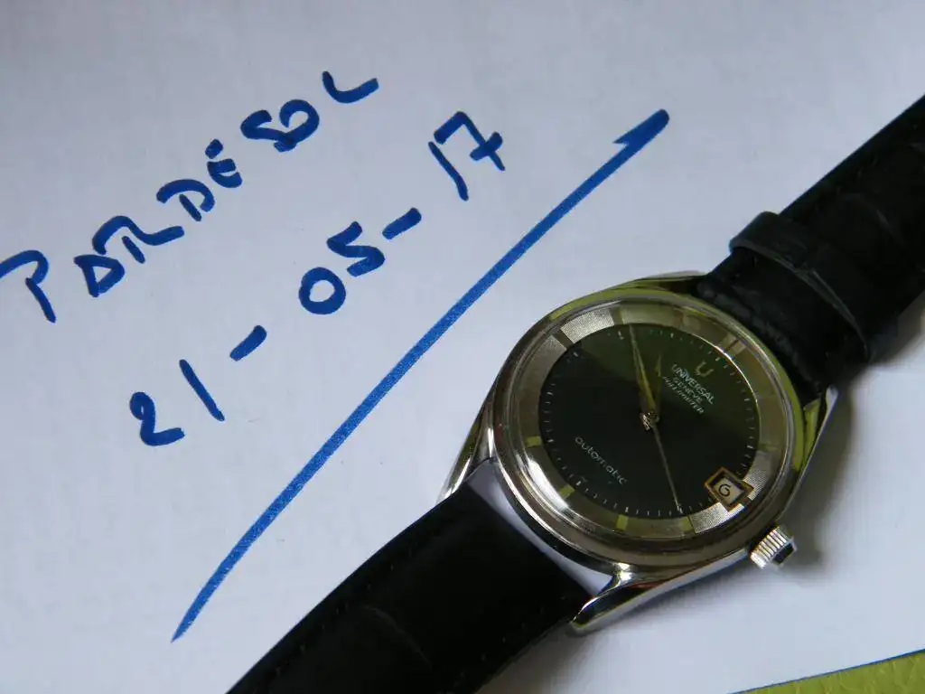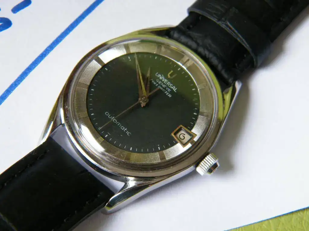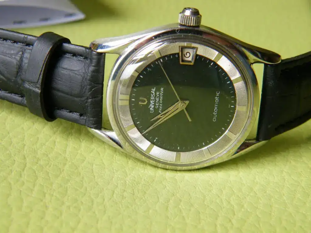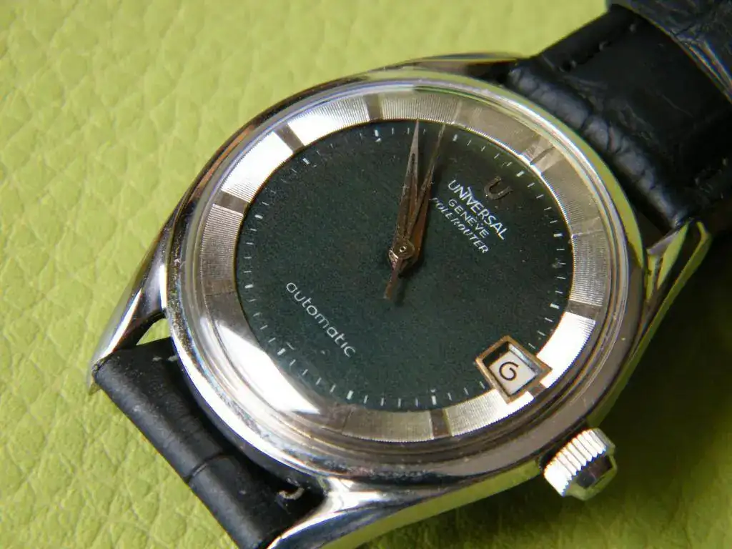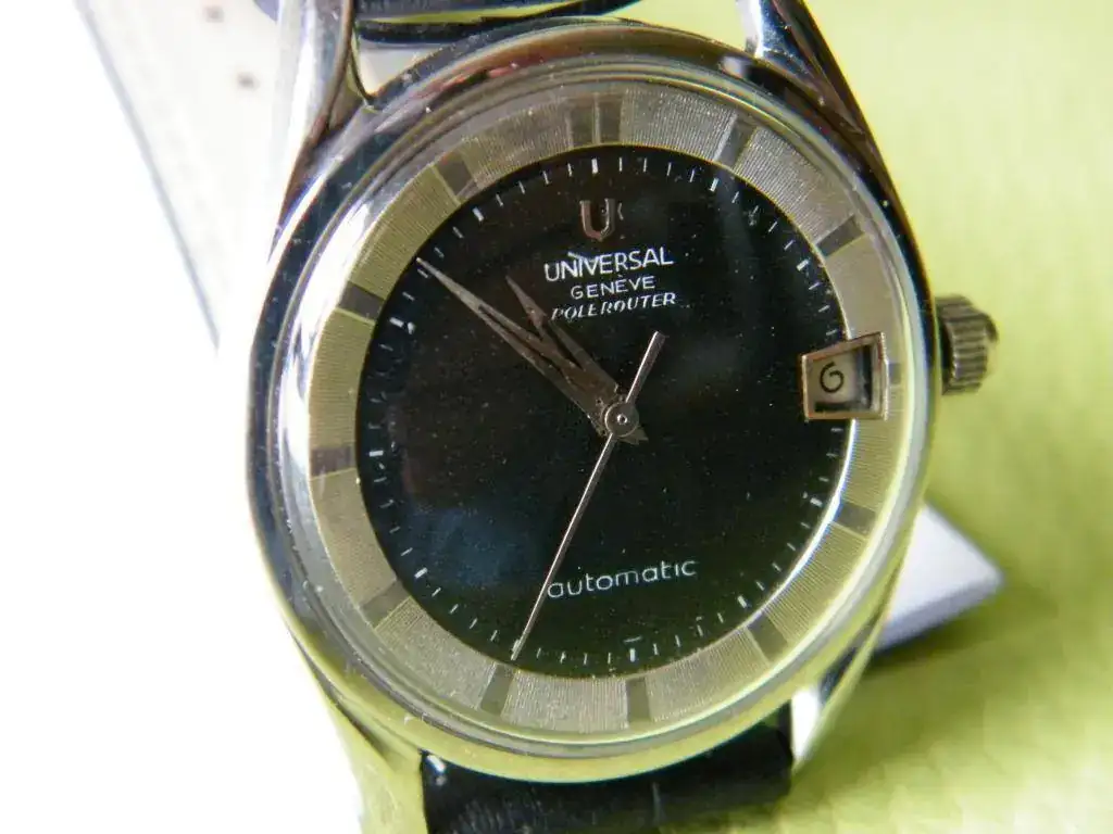 Como todo no puede ser, he decidido sacar a la venta este clásico vintage, se trata del conocido Universal Polerouter. En este caso monta un calibre 218-2 con fecha y carga automática mediante micro-rotor, tiene esfera negra y está bien conservado para su edad. El precio 450 euros