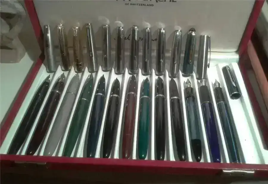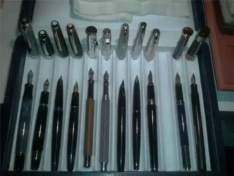 No me extiendo más y os subo un par de fotos con mis "trofeos" recopilados a lo largo de los años, unas mejores y otras... a falta de una buena puesta en marcha (para mí son todas estupendas 😉 ). Bastantes son heredadas, otras son regalos y alguna que otra comprada por mi maltrecho bolsillo. Hay unas cuantas que ni siquiera sé qué modelo y marca son, pero tiempo al tiempo. Por cierto, me gustaría poner en marcha las Parker por mis propios medios, así que se aceptan sugerencias jeje.
