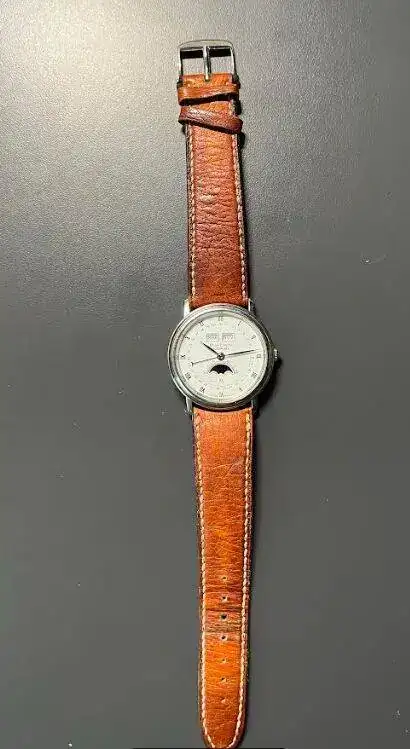 Tengo que decir que me encantan los relojes vintage y la búsqueda ha sido una de las que más me ha gustado, junto con la de mi Speedy Reduced, mi santo grial. Siempre había querido un reloj con fase lunar que fuera sencillo pero elegante porque recuerdo a mi tío con uno que me encantaba y un día se me cruzó por el camino este modelo, mirando el diver de la marca y tuve un flechazo instantáneo.