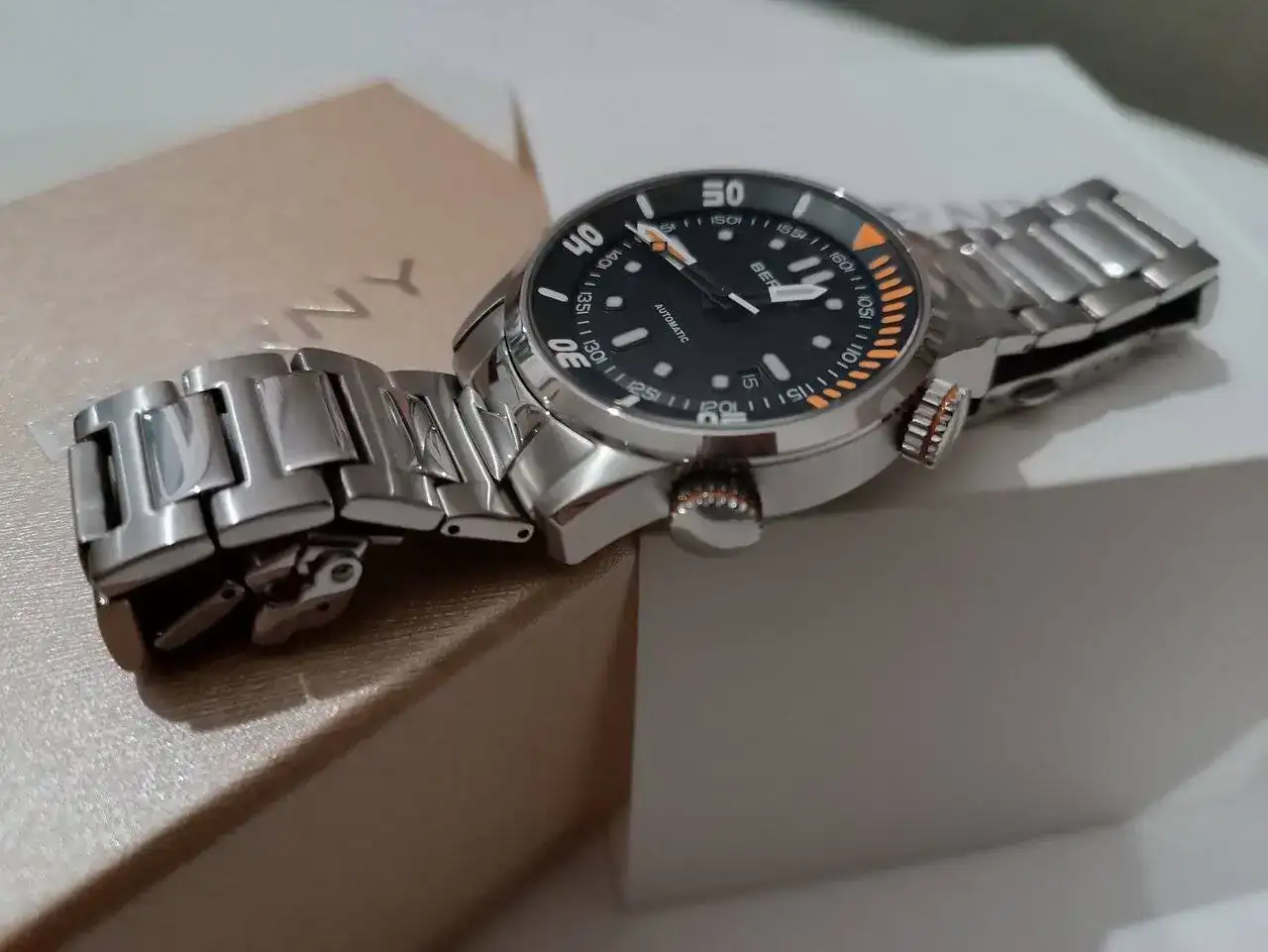 Baltany, que creo que imita al primer Rolex Oyster de 1926. Mecanismo Seagull ST1701 (Tengo un Seagul con la versión a cuerda del ST17 desde hace unos 4 años y va muy fino)