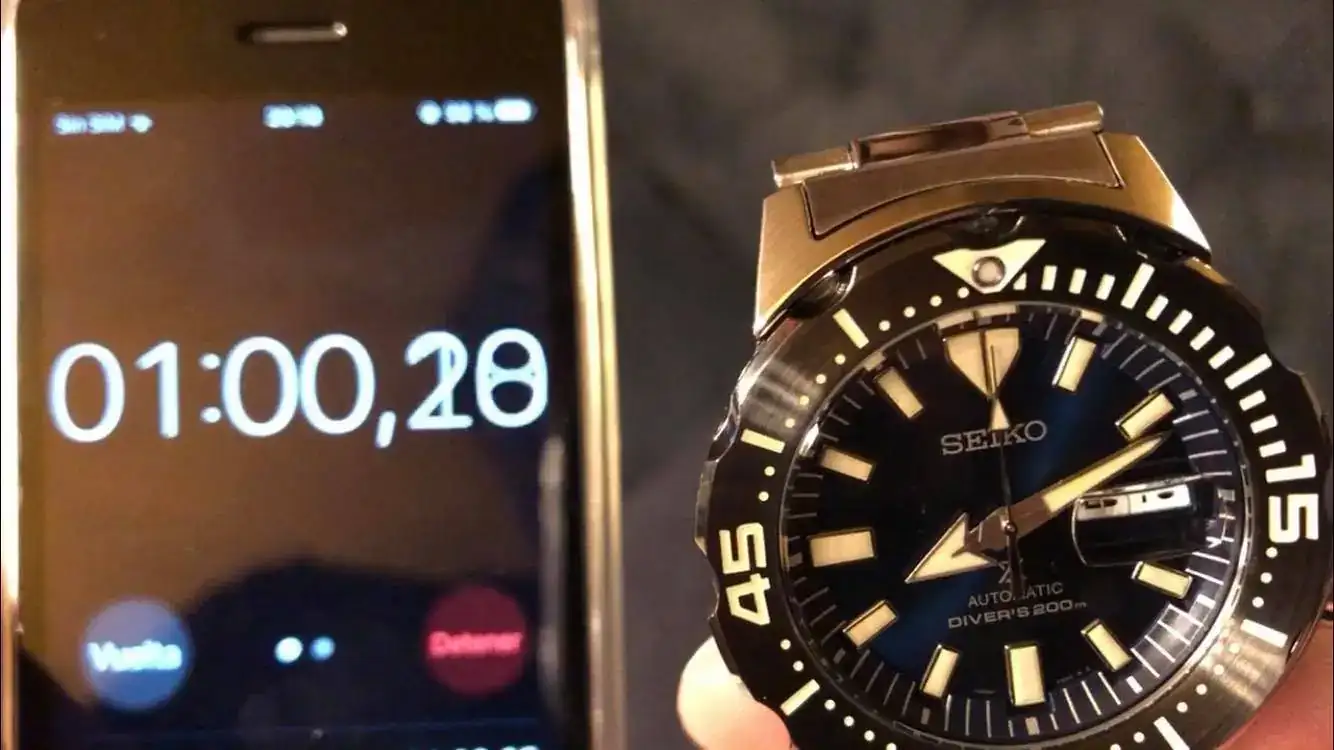El caso es que ya pensando que a más carga, menos se adelantaba, he cogido mis relojes más antiguos y he hecho la misma prueba. Primero con uno chino malo. 4-5 segundos de adelanto en un minuto. Después con un Glycine Combat, y por último con un Longines Avigation, con un par de segundos de adelanto en un minuto agitándolos.