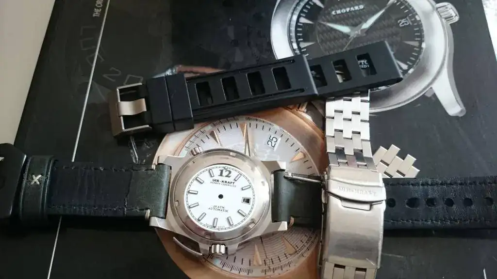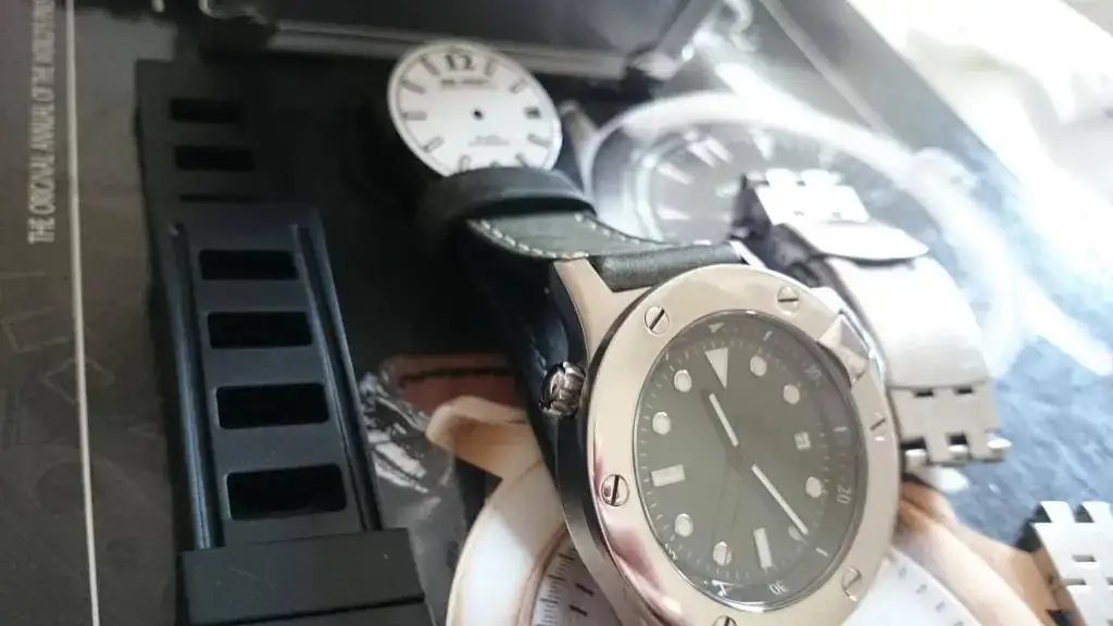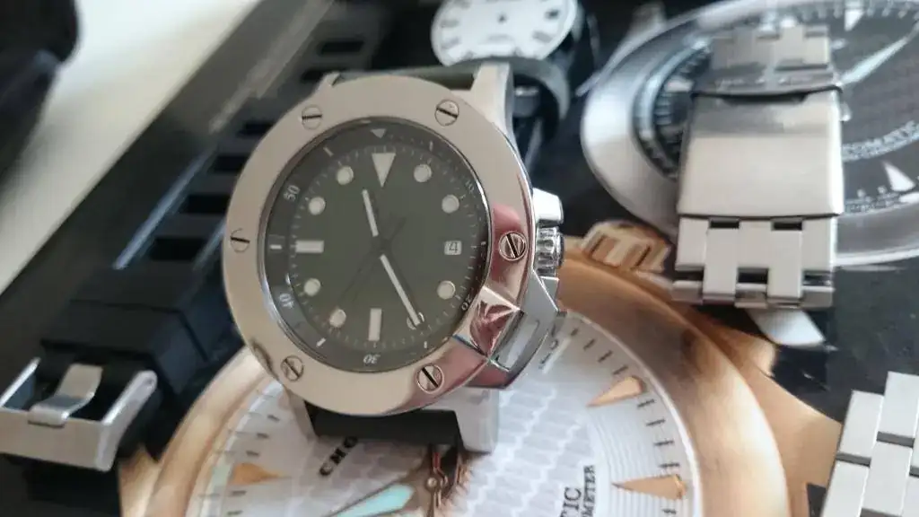 Brazalete: Original de la marca, de eslabones sólidos y doble cierre de seguridad. Ancho de asas,22 mm. Se te manda con todos los eslabones y de regalo una de piel en color verde , el mismo de la esfera y una sin estrenar de caucho.[/TD]