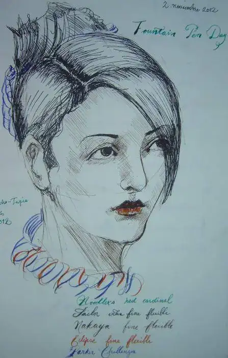 ) también uso las plumas japonesas que tengo, que son puntos finos, son estupendas para el dibujo: Sailor 1911 EF, Sailor Sapporo F, y las Pilot que tienen una gran suavidad (Pilot heritage ´91 SF, y Pilot 74 también SF). También suelo utilizar una lamy allstar EF.