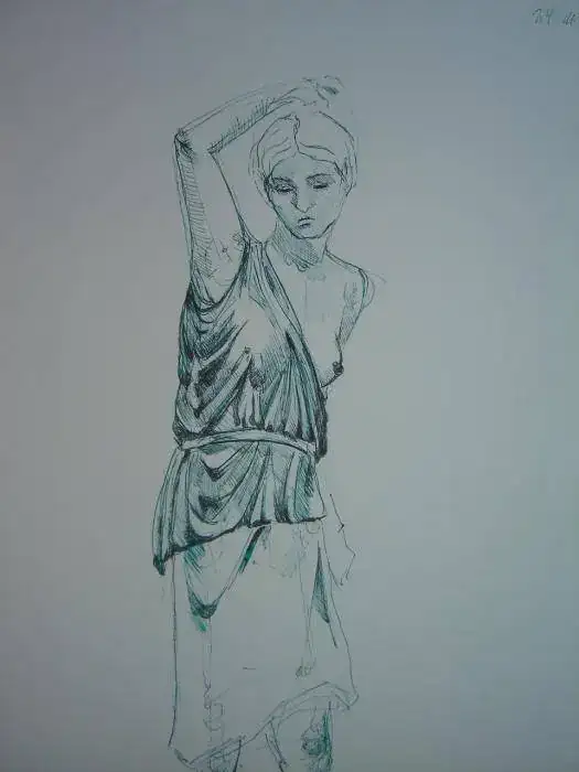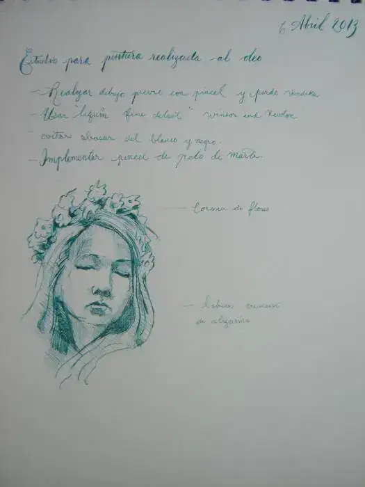 Este dibujo fue realizado un 2 de noviembre en una terminal de autobuses; mientras esperaba que llegara la salida de mi autobus, me dispuse a realizar un dibujo con unas estilográficas que llevaba a la mano; bueno una noche anterior iba por el transporte metro, y vi un muchacha que se me hizo simpática, así que trate de recordar su cara y realicé un boceto en miniatura de ella, y aquel boceto fue el que me dispuse a plasmar en formato más grande en un papel A4.