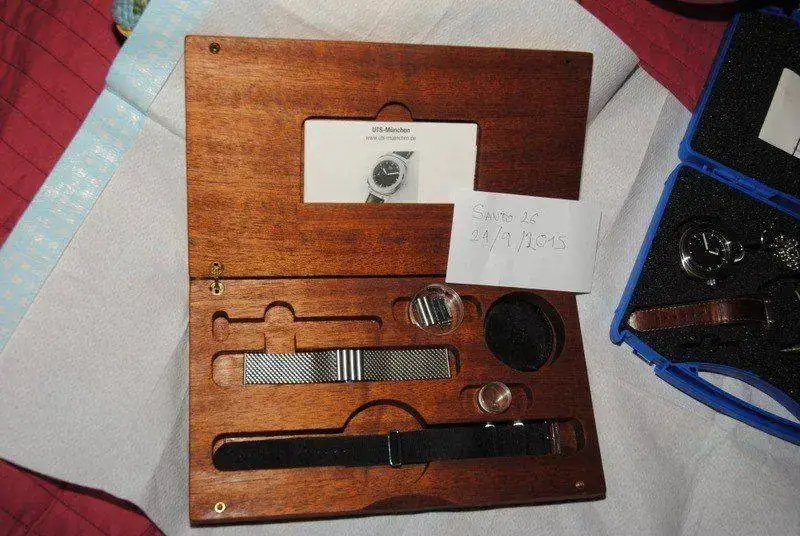 Tiene un estuche de viaje muy completo, ya que este modelo tiene la opcion de convertirlo a reloj de bolsillo