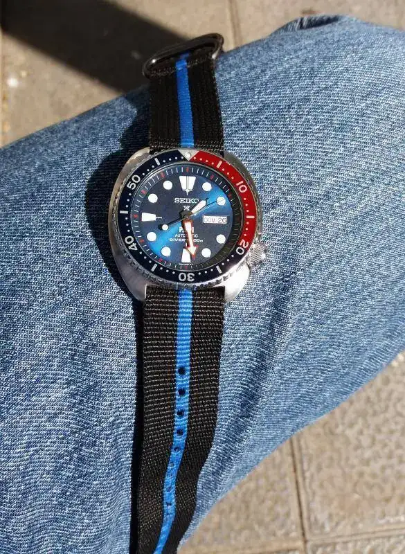En un momento de debilidad, le he cambiado los pantalones por una NATO de Luminox y la verdad es que también le sienta bien ;-)
