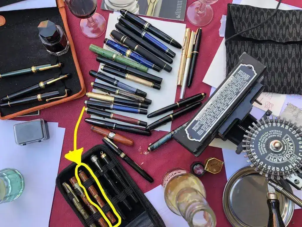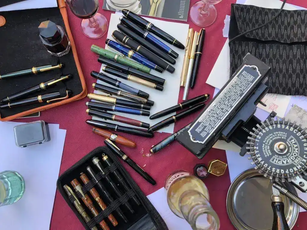 Observo que la reunión es de las denominadas "clásicas": Buen tiempo,buenas bebidas y buenas estilográficas, desde luego todo bueno. Nada de imitación.