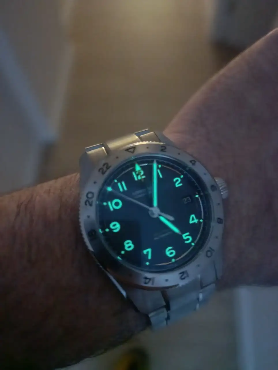 Cuando salió este modelo, al momento me enamoró...su simpleza de diseño (me gusta como Hodinkee suele hacerlos más limpios), GMT, titanio en grado 5, el estrechamiento pronunciado del brazalete...todo me encantaba de él...