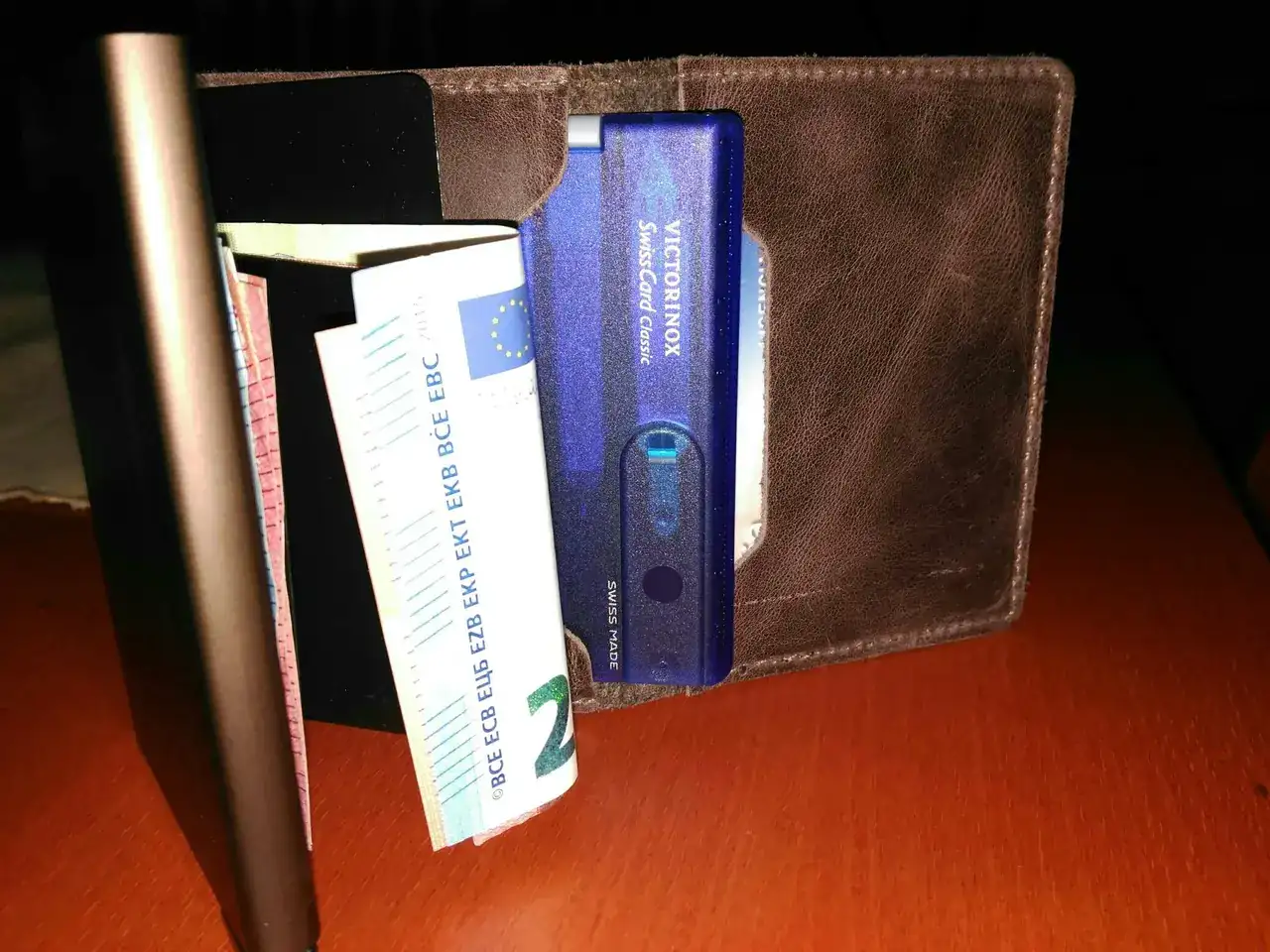 Veo que eres tambien mucho de victorinox....yo suelo llevar una mini en el llavero, pero igual me paso a la tarjeta....como queda con ella dentro?