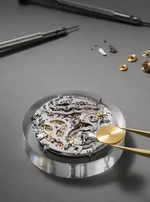 Uno de los primeros retos fue alojar un mecanismo de sonería sin renunciar a la delgadez del calibre, sobre todo porque la secuencia musical retenida es la más sofisticada de todas: un carillón de Westminster con cuatro gongs y cuatro martillos. Esta complicación representa por sí sola 7 de las 13 patentes registradas para esta pieza única.