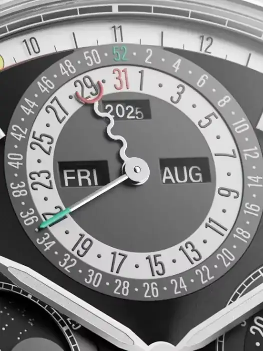 Con 41 complicaciones, 5 funciones astronómicas excepcionales y una innovadora repetición de minutos Westminster, este reloj único con 1521 componentes corona ocho años de investigación y desarrollo, incluidas 13 aplicaciones de patente registradas.