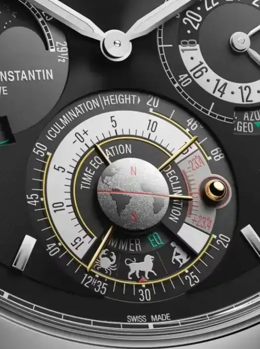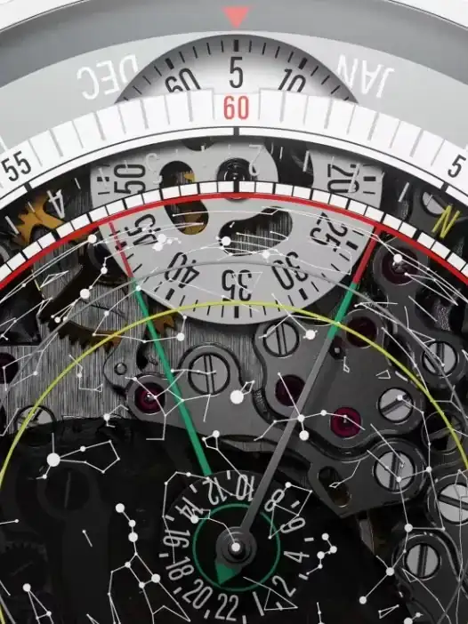 Esta quinta complicación astronómica, una primicia mundial, combina un cronógrafo con ratrapante con una representación de la bóveda celeste y permite calcular el tiempo que tarda una constelación o una estrella determinada en aparecer en el centro del campo de visión del observador.LEGIBILIDAD DE LAS INDICACIONES