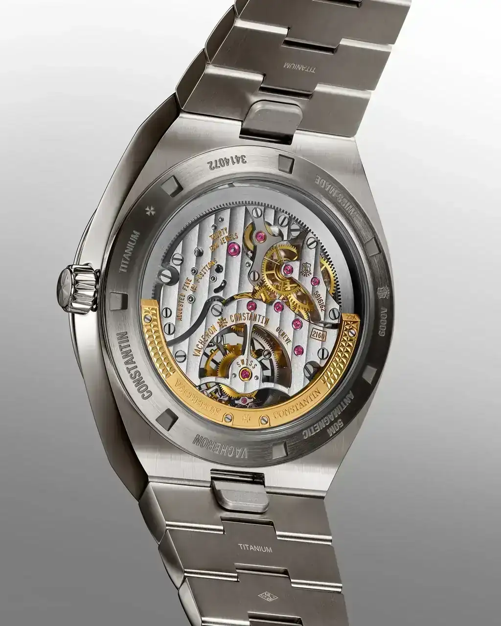 Gracias a su calibre tourbillon automático 2160, con un diámetro de 31 mm y un grosor de tan solo 5,65 mm , este reloj Oveseas disfruta de una caja extraordinariamente fina. Este movimiento ultraplano, con jaula de tourbillon, cuenta con cuerda bidireccional, asegurada por una masa oscilante periférica con un segmento guilloché de oro 916/1000, lo que le proporciona una reserva de marcha de 80 horas. Este tipo de construcción ofrece una doble ventaja: proporciona una visión sin obstáculos del movimiento e integra la masa oscilante en los puentes, lo que resulta en una reducción significativa del grosor. Con el mismo enfoque en la delgadez y la eficiencia, la jaula calada del tourbillon incorpora un accionamiento periférico, eliminando la necesidad de un piñón central. Esta configuración garantiza una transmisión óptima de la energía desde el barrilete del muelle real hasta el volante. El calibre presenta una platina con granulado circular, los puentes están decorados con Côtes de Genève y biselados a mano, el cuerpo del tourbillon está delicadamente encajado, las ruedas están graneadas y los tornillos están biselados y pulidos.