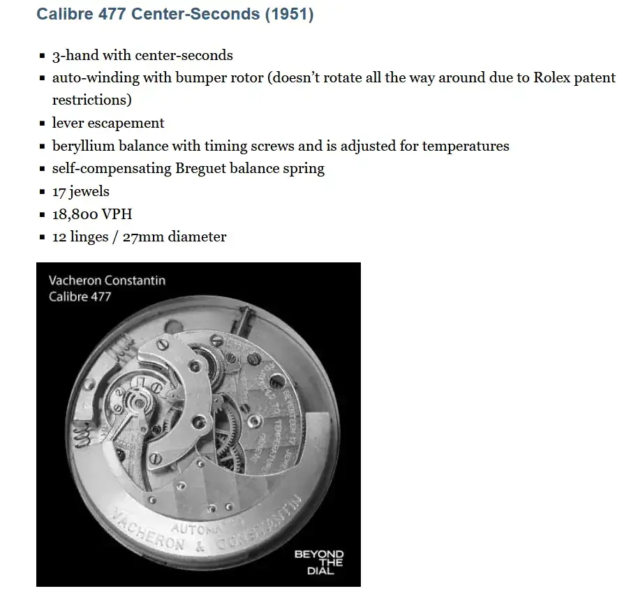 El primer calibre automático de VC es el 477 con martillo, de 1951 (base JlC)