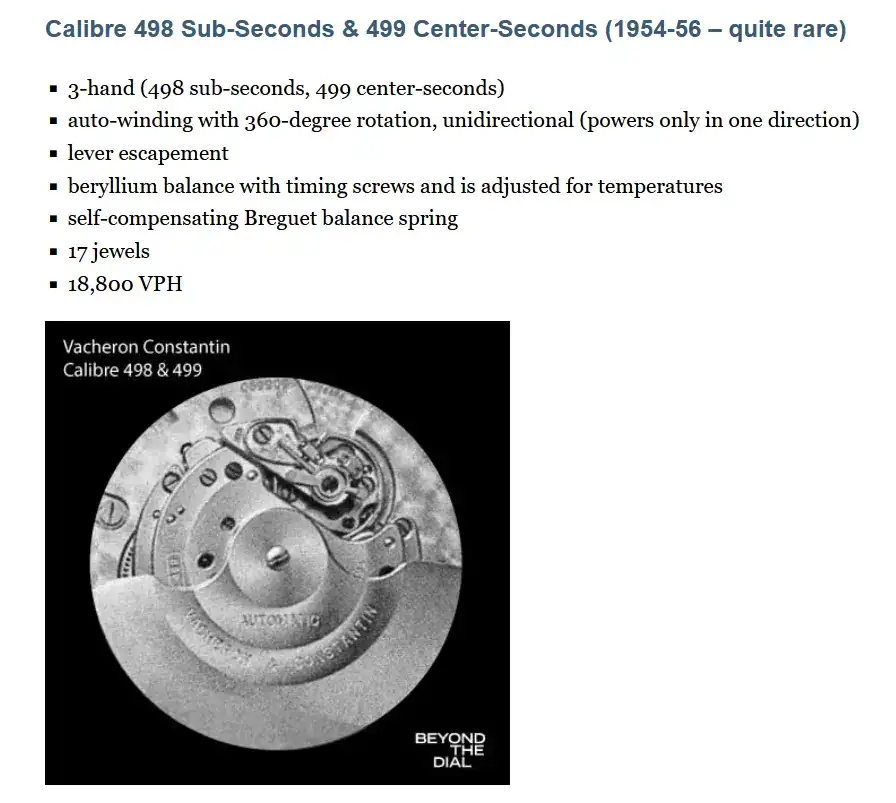 El segundo calibre automático de VC es el 498/499 con rotor central, de 1954-56 (base JlC)