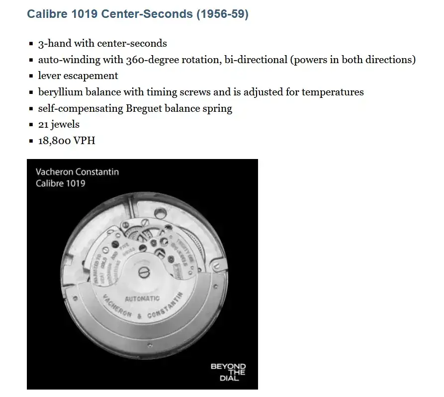 El tercer calibre automático de VC es el 1019 con rotor central, de 1956-59 (base JlC)