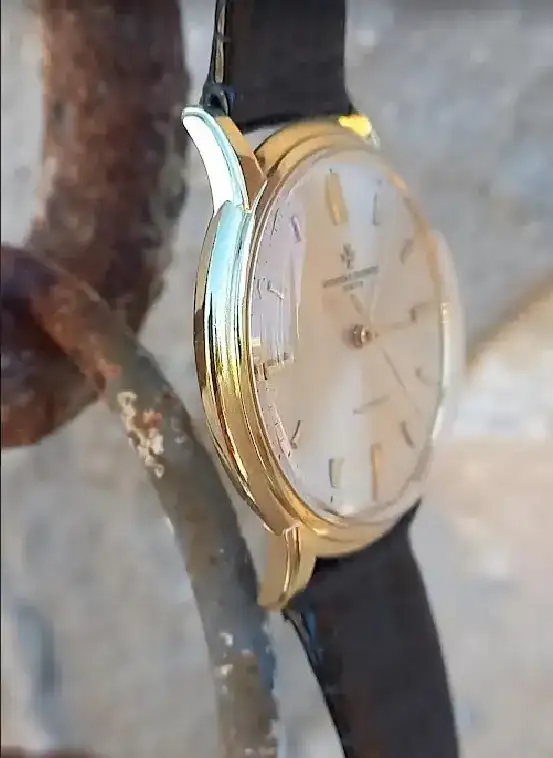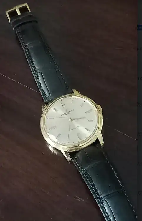 Tengo una correa de cocodrilo pegada de los años 60/70 nueva en mi stock que está en las fotos y también una cocodrilo mate de VC más moderno. Venía con el reloj, lo limpié bien y engrasado, está perfecto ahora y super suave. El tamaño en ambos casos es 18 mm entre asas y el ardillón de 14 mm como es periodo correcto. El ardillon lo tenía yo y es de oro 18 kilates original VC.