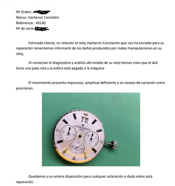 He de decir que tras declinar la propueta opcional, por parte del SAT, de cambiar la esfera por tener, creo yo, un minusculo "bultito" podria decirse como una burbujita apenas perceptible en la esquina superior derecha de la ventana del calendario; solo visible con una casi minuciosa observacion (medio se puede apreciar en la foto de inicio). No lo consideraba motivo bastante para cambiar la esfera ademas del consecuente costo (estas cosas no son baratas). Pues bien, esta burbujita ha desaparecido por lo que pienso que aun a pesar de haber rechazado la propuesta de cambio de esfera, la esfera ha sido cambiada, o aunque no sé como, puede que haya sido reparada. El caso es que de una forma u otra, ninguno de los dos casos viene reflejado en el desglose de intervenciones realizadas. Pero el bultito ya no está 🤷🏻♂️
