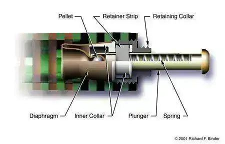 Yo pensaba que tendría saco (es la primera de estas características que tengo) pero no, por lo visto es un diafragma conectado al pulsador superior y que actúa como una jeringa.
