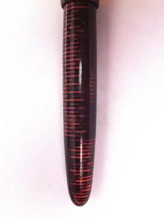 Por cierto, le falta la joya de la parte del capuchón de arriba. Una vez que me ayudéis a catalogarla bien, haré mis indagaciones para conseguirle uno de repuesto. He visto fotos en la red de muchas de este tipo y hay unas que lo llevan negro y otras en las que va del mismo material rayado (no se cual le correspondería realmente)