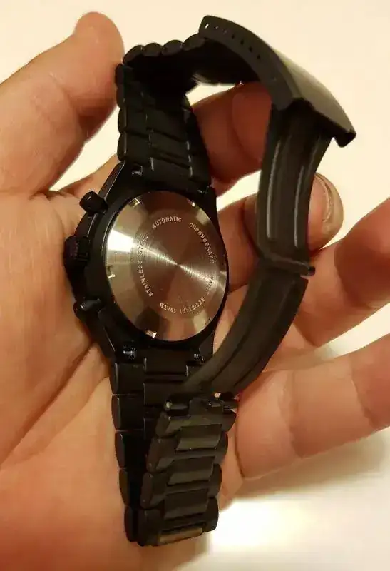 - brazalete inox completo 22mm (hasta tallas grandes) con recubrimiento ip negro y cierre mariposa.