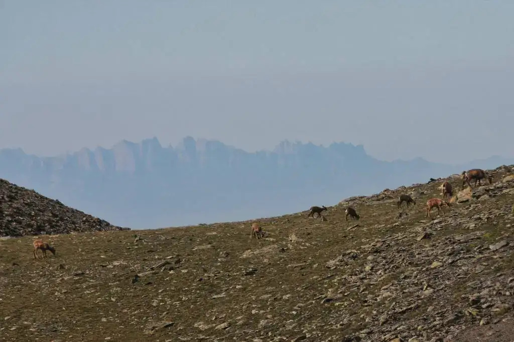 Emprendemos el camino de regreso, rebecos con la montaña de Montserrat de fondo
