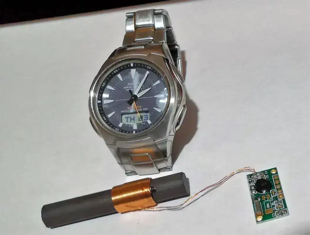 Encontré un muelle metálico del grosor de un dedo (aproximadamente) y por las noches dejo reposar el reloj sobre el muelle (el muelle obviamente en posición horizontal) colocando el muelle a la altura de las 12 del reloj, desde entonces sincroniza siempre.