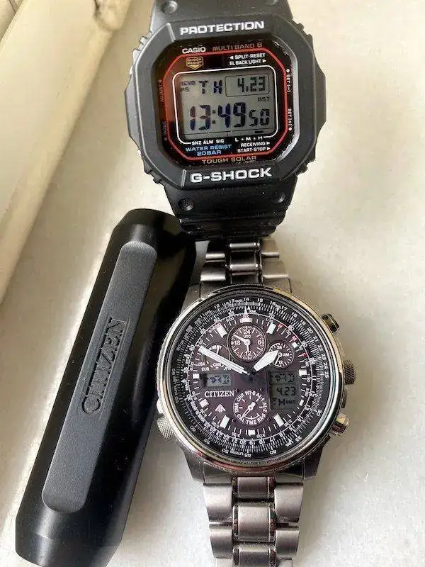 Mi Gshock tampoco sincronizaba bien, un día si y muchos no, estaba a punto de comprar la antena que vende citizen, viendo que no llevaba pilas supuse que era un simple tubo de metal y no la compré.