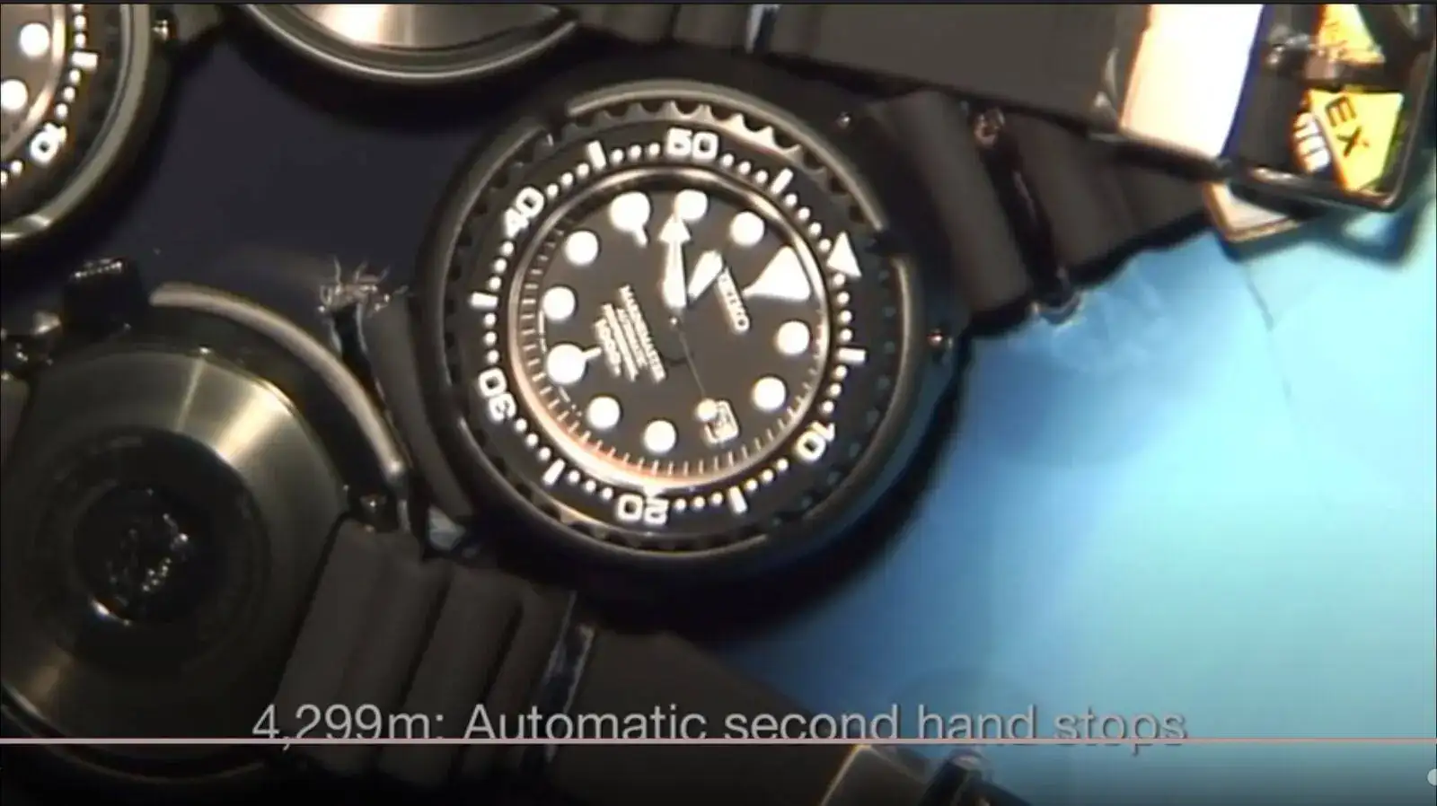 Momento en el que el Seiko Marinemaster 1000m deja de funcionar sujeto al batiscafo Kaiko 7000 II
