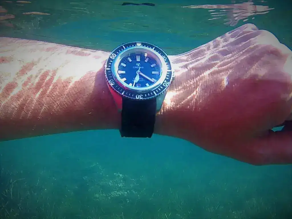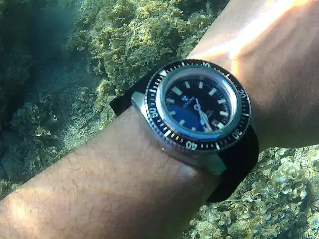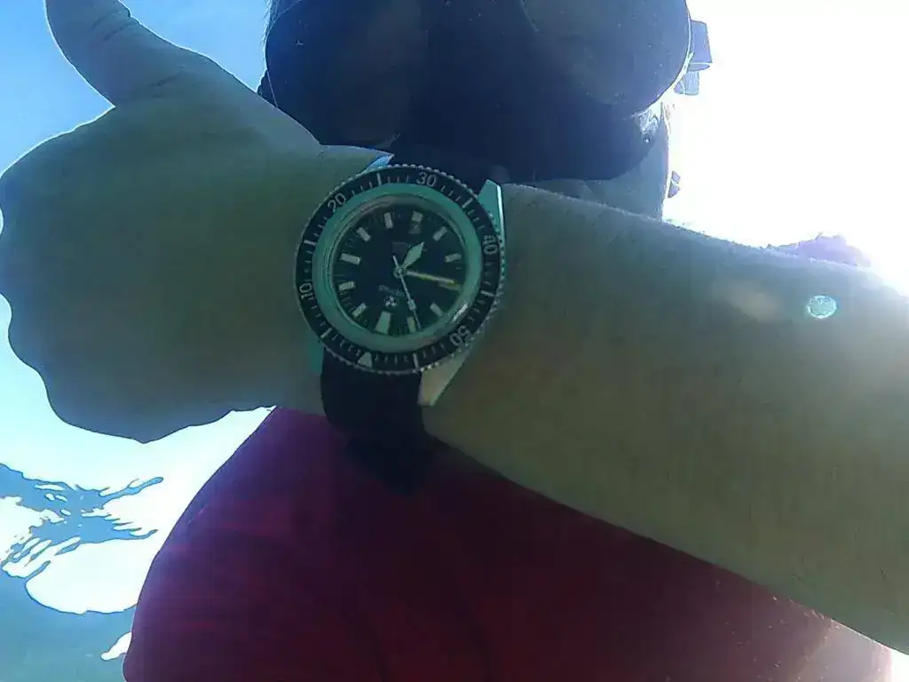 Bueno, tengo que decir que he sido un poco inconsciente yo también pues he sumergido el reloj(comprado de segunda mano) sin haberle hecho la prueba de estanqueidad antes, pero al haber recibido su caucho original e inspirarme en Gus(que se de buena tinta por sus palabras que también se lanza al vacío en este sentido) no he podido resistirme...