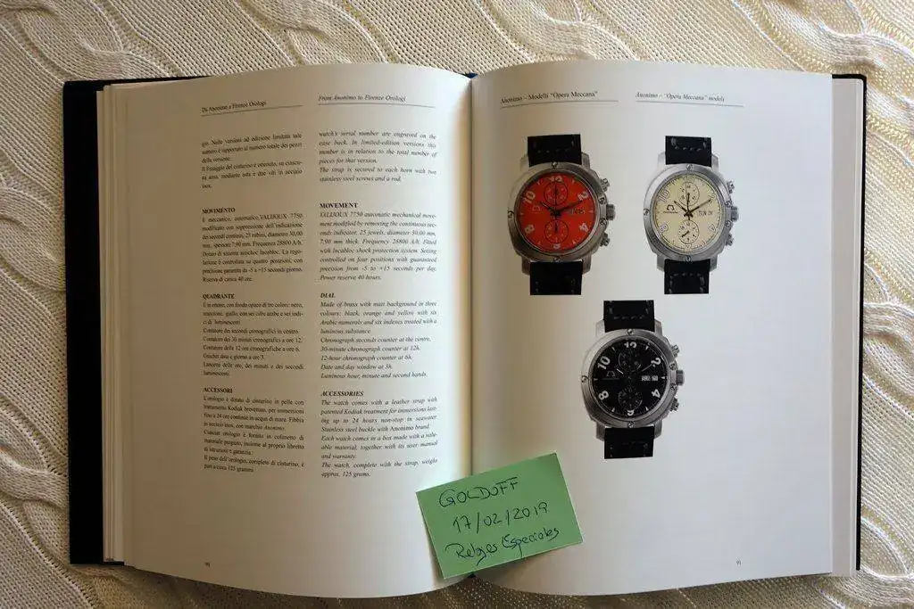 Seguimos con un desaparecido: el libro de Anonimo con los relojes de la marca en la época con Dino Zei. Una época que ya terminó, por lo que se podría considerar que los relojes aquí relacionados son vintages. En realidad es una especie de catálogo de lujo con una introducción histórica y explicaciones de las características de cada reloj. De este tengo dos unidades disponibles, por lo que habrá para todos